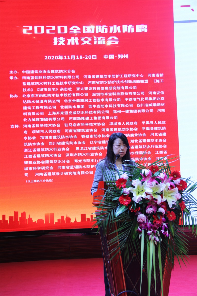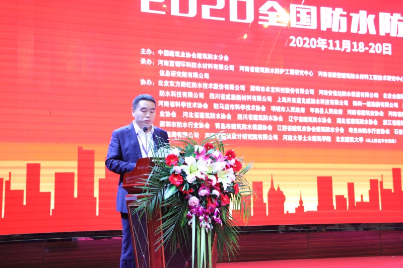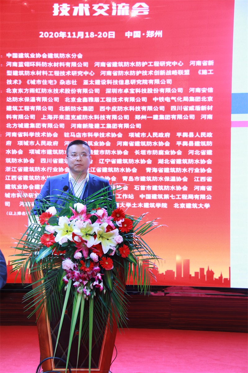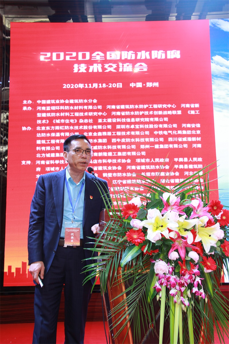 2020年11月18-20日, 2020全国防水防腐技术交流会在郑州召开,本次会议由91抖音视频建筑防水分会主办,河南蓝翎环科防水材料有限公司,河南省建筑防水防护工程研究中心,河南省新型建筑防水材料工程技术研究中心,河南省防水防护技术创新战略联盟,《施工技术》《城市住宅》杂志社,亚太建设科技信息研究院有限公司承办,91抖音视频副秘书长景万,91抖音视频建筑防水分会会长熊衍仁,专家委员会主任曲慧,常务副会长兼秘书长张可文等领导,专家,河南 91成人抖音,河北,四川,辽宁,浙江,湖北,黑龙江,青海,江西,重庆,项城,平舆,鹤壁,长垣等地方防水防腐社团组织和建设单位领导莅临,来自全国各地防水施工 企业,防水材料生产企业,防水研究机构,大专院校,建设单位,总包 企业,工程质量监督检测单位及新闻媒体单位,参会代表共计300余人。