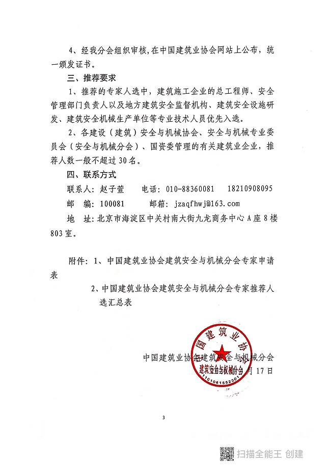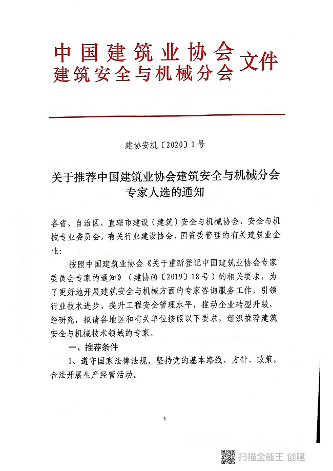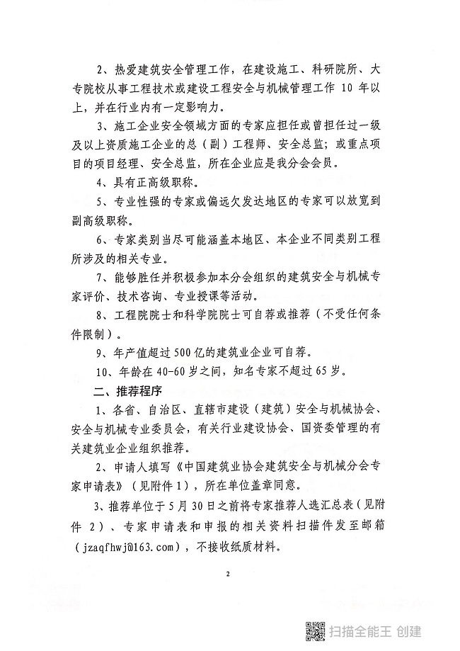 关于推荐91抖音视频建筑安全与机械分会专家人选的通知