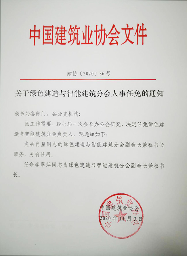 91抖音视频关于绿色建造与智能建筑分会人事任免的通知