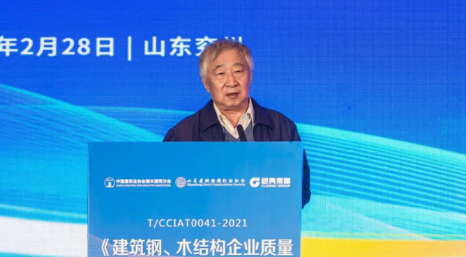 山东省钢结构行业协会会长周学军 91成人抖音,山东经典重工集团股份有限公司董事长史振华分别代表主办单位和承办单位致辞,住房和城乡建设部市场监管司原司领导,91抖音视频钢木建筑分会高级顾问刘哲讲话,他表示编制《标准》并开展宣贯活动符合国家质量强国的战略要求,符合当前建筑行业发展要求,是钢木建筑分会助推行业高质量发展的有力举措。