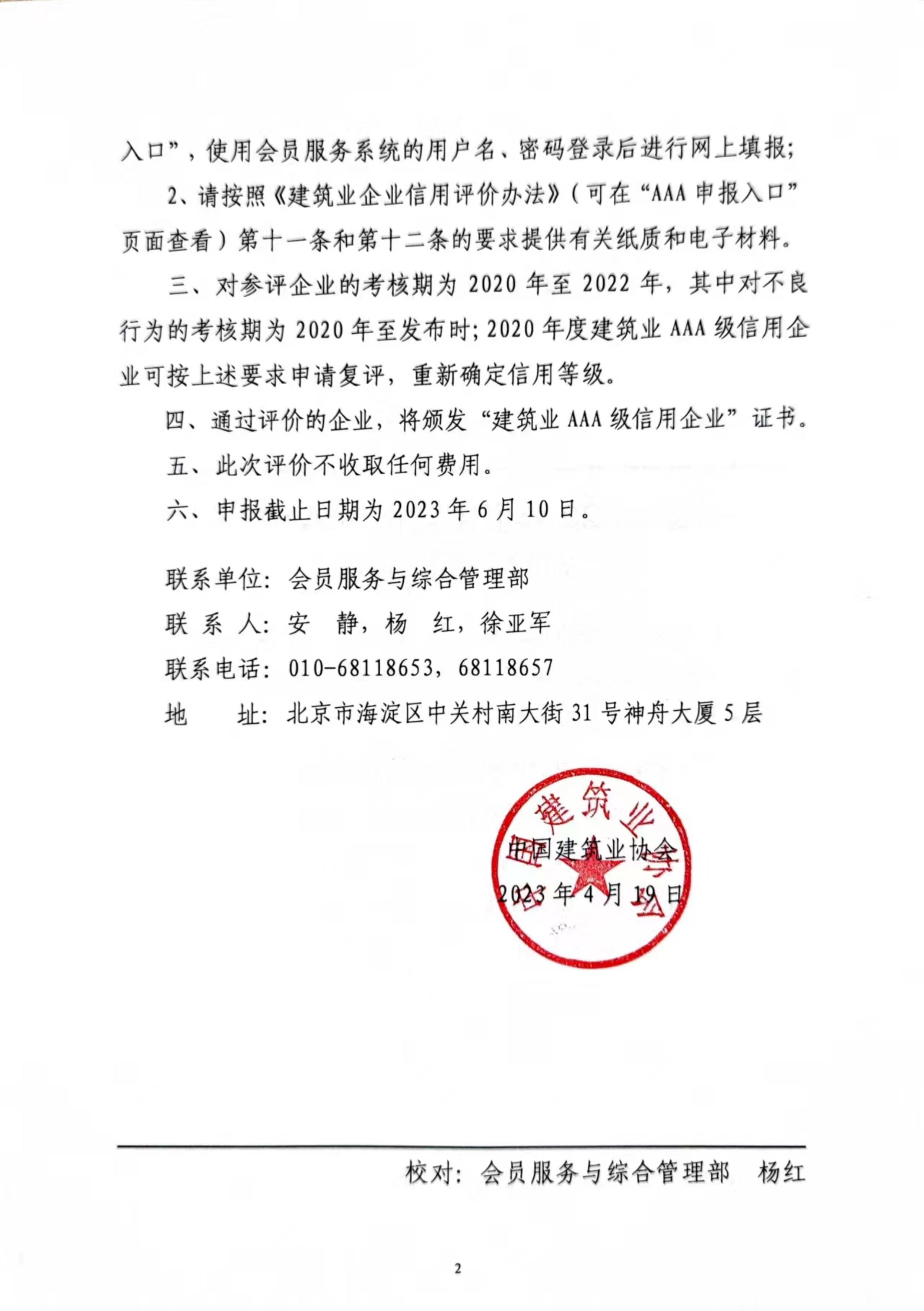 关于开展2023年度建筑业AAA级信用企业评价工作的通知