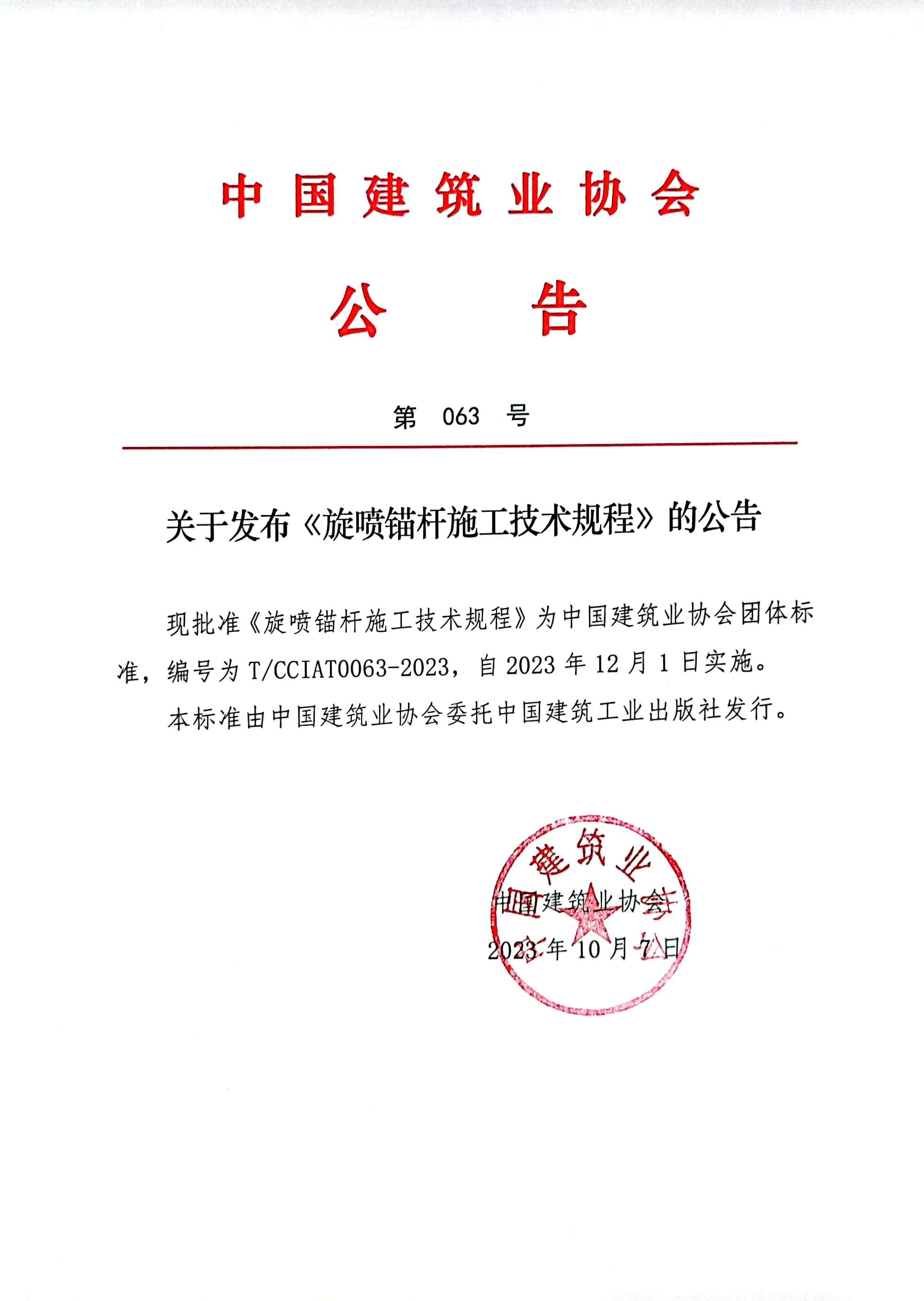91抖音视频 - 关于发布《旋喷锚杆施工技术规程》的公告