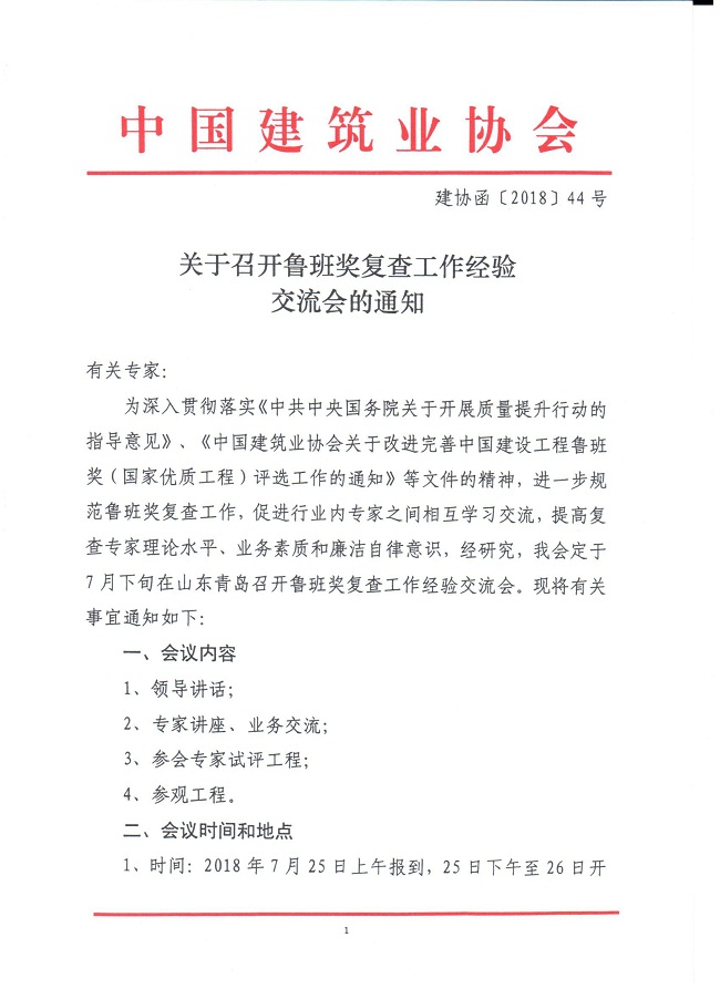 关于召开鲁班奖复查工作经验交流会的通知 (91抖音免费版)