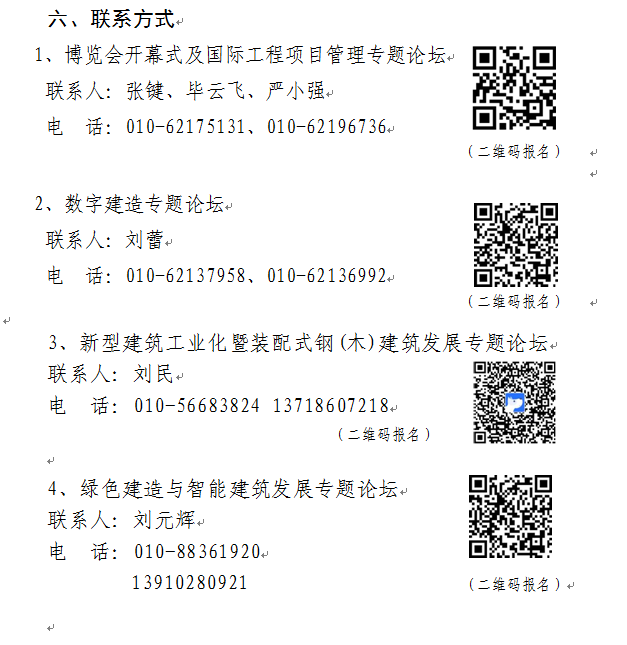 五,其他事项 (一)我会展区和专题论坛属公益活动,不收任何费用, (二)免费为参会代表提供6月24日 91成人抖音,25日展区午餐,其他食宿自行解决, (三)为便于安排会务工作,请于6月18日前反馈报名信息(手机扫各专题论坛二维码即可报名), (四)会议指定的住宿酒店到天津会展中心设有摆渡车,免费接送参会代表, (五)参会代表须严格遵守天津市疫情防控规定,提前做好防疫准备, (六)参展需持身份证入场。