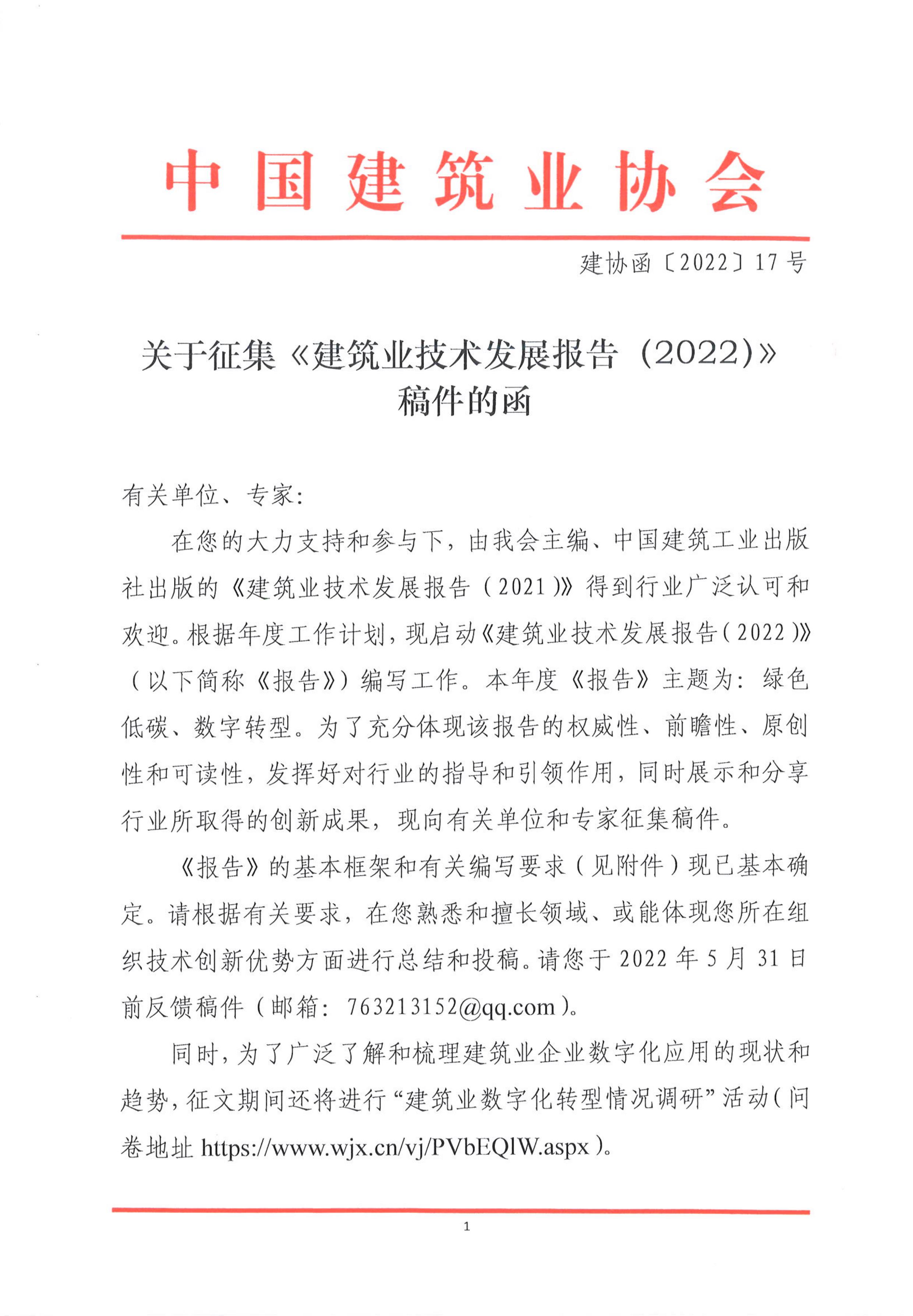 关于征集《建筑业技术发展报告(2022)》稿件的函
