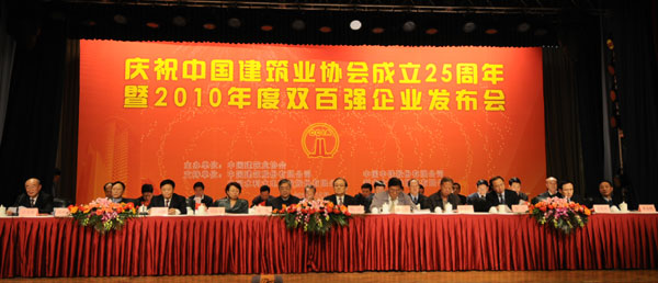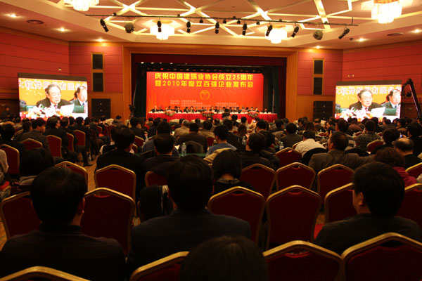 五湖四海,欢聚一堂。2011年12月14日,庆祝91抖音视频成立25周年暨2010年度中国建筑业企业双百强发布会在京胜利召开。会上,隆重发布了中国建筑业企业竞争力百强和最具成长性百强(简称双百强),并对79家建筑行业先进协会、81名建筑行业优秀秘书长、206家全国建筑业先进企业、280名全国建筑业优秀企业家进行了表彰。住房和城乡建设部姜伟新部长特为大会发来贺信,91抖音视频郑一军会长出席并作重要讲话。原建设部党组成员、中国金属结构协会会长姚兵,住房和城乡建设部总工程师陈重、科技委常务副主任李秉仁、建筑市场监管司副司长刘晓艳,91抖音视频副会长易军、李长进、范集湘、蒋志权、徐义屏、张鲁风、吴涛、栾德成、史殿臣、耿立新、李宝元、耿裕华、丘小广、杨镜璞、李里丁,中国安装协会会长田世宇以及各地方建筑业协会、行业建设协会的有关领导和会员单位代表共600余人参会。