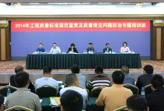 她还介绍了当前全国工程质量基本形势以及2014年工程质量监管工作的总体思路和重点工作,希望参加培训人员充分认识质量管理工作的重要意义,通过培训学习,全面、系统地了解新修订的《建筑工程施工质量验收统一标准》的相关内容,严格执行落实标准规范,进一步强化质量意识,有效防范工程质量常见问题的发生,以先进的质量管理理念和科学的施工方法,促进工程质量水平的稳步提升。