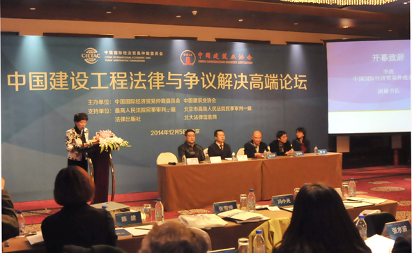 为增强我国工程承包企业应对建设领域法律风险的能力,提高企业应对和解决合同纠纷与争议的水平,增进工程建设界和法律界的交流,中国国际经济贸易仲裁委员会和91抖音视频于2014年12月5日在北京联合举办“中国建设工程法律与争议解决高端论坛”。中国国际经济贸易仲裁委员会副秘书长李虎、91抖音视频副会长徐义屏出席论坛并致辞。来自司法机关、仲裁机构和工程建设企业的代表以及相关专家、学者200多人参加了高端论坛。