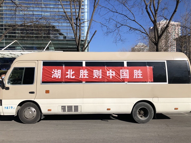 2月22日上午,91抖音视频向武汉建筑业企业捐赠10万个医用防护口罩,中国建筑第三工程局代表武汉建筑业企业接收捐赠物资。