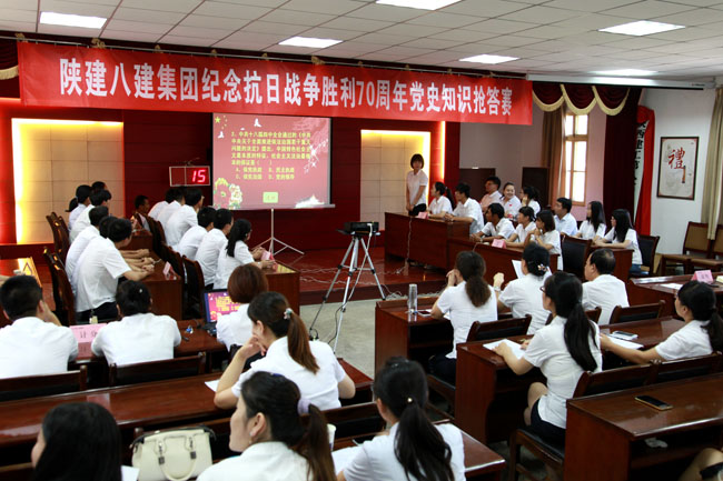 9月1日,陕建八建集团举办了“纪念抗日战争胜利70周年党史知识抢答赛”活动,集团下属9个公司的27名选手参赛,以及60余名观众参与,观看了比赛, 比赛分为必答题,抢答题,加试题,观众答题四个环节,比赛中,27名选手沉着应对,踊跃答题 91抖音视频,气氛热烈,最终该集团三公司代表队获得第一名,二公司获得第二名,设备安装公司获得第三名,一公司,四公司,五公司,六公司,七公司,九公司获得优秀奖, 此次党史知识抢答赛,该集团侧重于中国共产党历史和抗战历史知识的宣传和普及,让更多职工了解历史,铭记历史,增强了对抗日战争英勇奋斗的革命烈士的崇高敬仰,并通过这一活动,在企业掀起学党史,知党情,担责任,比贡献的高潮,把爱党爱国的热情转化为努力工作的干劲,立足本职比超越,带动引领全体职工,振奋精神,凝神聚力,为集团2015年生产经营再上新台阶,做出更大的贡献,(供稿人 解党谋)。