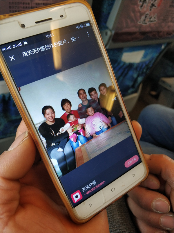 火车上 91成人抖音,工友们聊天,用手机看新闻, 罗多雄从手机里翻出过年时候拍的一张全家福看了又看,笑呵呵地说,“想孙子啦,”。