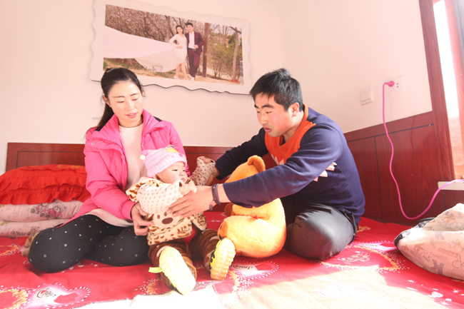 年初,贾跟强走的时候孩子刚生下不久,现在孩子已经会坐了。全家人瞅准这“难得的机会”拍了张合影。
