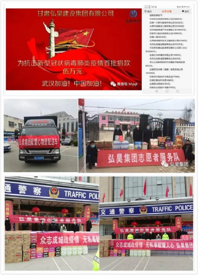2020年的春节是非常不平凡的,突如其来的新型冠状病毒感染的肺炎疫情时刻牵动着每个人的心,面对严峻的疫情防控形势,甘肃弘昊建设集团有限公司认真学习习近平总书记关于疫情防控的重要讲话和指示精神,积极响应甘肃省文明办,甘肃省卫健委 91抖音视频,甘肃省志愿者联合会等多部门的号召,公司通过视频会议的方式召开专题会议,为保障疫情期间的安全生产及员工个人安全,成立防疫领导小组,明确防疫的工作任务及职责,全体弘昊人主动作为,积极应对,勇于担当,积极投入到抗击疫情战斗中, 在此期间,全体弘昊人认真履行防疫工作的职责,从小事做起,为本次抗击疫情贡献微薄之力,先后承担了兰州大学第一医院西站院区维修改造项目施工任务,积极参加社会公益活动,为抗击疫情捐款捐物,深入了解员工的出行及健康状况,一起助力武汉,为中国加油, 担当作为,临危受命,抢修疫情病例救治医院 医院作为抗击疫情的前沿阵地,医院的各种设施关系着战胜本次疫情的重中之重,1月30日,省卫健委下发《关于增加新型冠状病毒感染的肺炎救治定点医院的通知》,兰州大学第一医院西站院区被列为新增省级定点医院之一,计划是其整体改造为满足新型冠状病毒感染的肺炎疑似病例,确诊病例救治条件医院,此建设项目由甘肃弘昊建设集团有限公司承建,建设工期仅有15天,公司自接受任务起,迅速成立项目经理部,积极调动施工资源并部署安排准备,克服疫情管制的困难与春节假期的影响,召集107名一线工人,经过24小时不间断的紧急抢修抢建施工,保质保量完成了院区物理隔离,病房装修,维修改造,水电暖扩容及管线线路改造维护,诊疗设备购置,信息系统升级,安保系统完善等施工工作,经过10天的日夜奋战,先后完成10000㎡的施工任务,施工期间,公司主要领导前往施工现场,了解作业人员的防疫情况及日常的生活情况,并对他们特殊时期的辛勤付出给与充分的肯定,于2月10日经专家组领导验收合格并交付医院投入使用,受到各级主管部门一致好评, 密切关注,积极响应,捐款购置疫情防控物资 1月30日,在全国人民奋力抗击疫情的关键时刻,得知白银区抗疫物资紧缺,公司立即响应向白银区红十字会捐款50000元用于该区新型冠状病毒感染肺炎疫情防控紧缺物资的采购,全力支持疫情防控工作, 主动作为,志愿服务,为一线疫情防控检查站点捐赠紧缺物资 公司积极响应甘肃省文明办,甘肃省志愿者服务联合会发《关于号召全省广大志愿者,志愿服务组织以及广大市民朋友们积极有序参与疫情防控志愿服务的倡议书》的号召,集团公司志愿者贯彻落实集团公司党政工“自我防护,自我管理,就地原则,就近服务”的工作部署,积极联系,主动作为,购买一线紧缺物资:消毒液800升,桶装泡面150箱,矿泉水150扎,防护服7套,电动喷雾器7个,橡胶手套250套,热水壶7 个,八宝粥70箱等,由景继堂,景文杰,董湛带队向坚守一线的各自驻地疫情防控检查站工作人员东区慰问,并积极有序参与到疫情防控中, 党员优先,模范带头,助力疫情防控狙击战 1月31日国家卫健委直属机关党委引发《关于充分发挥党组织战斗堡垒作用和先锋模范坚决打赢疫情放空狙击战的通知》,弘昊党支部结合自身实际,开展微信,钉钉线上活动,鼓励关心好员工,安抚防疫焦虑,加强疫情放空舆论引导和政策措施解读,积极投身到疫情防控工作中去,与此同时,开启公司内部排查模式,员工定时汇报身体健康情况,及时掌握员工动态,党员杜博义主动请缨,修改既定假日值班安排并主动值班,在办公室消杀保洁,保证办公室环境安全,党员王楚楠积极调整部署工作方式,创建“居家上班平台”,开房“钉钉”端口程序,为全面开启居家上班创造条件, 天下兴亡,匹夫有责,疫情无情,人间有爱,在全面抗击新型冠状病毒感染的肺炎疫情的攻坚时刻,全体弘昊人相信在党中央和国务院的正确领导下,与全国上下齐心协力,共克时艰,打赢这场没有硝烟的疫情防控战,(甘肃弘昊建设集团有限公司 董湛 刘嵩寅)。