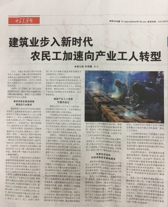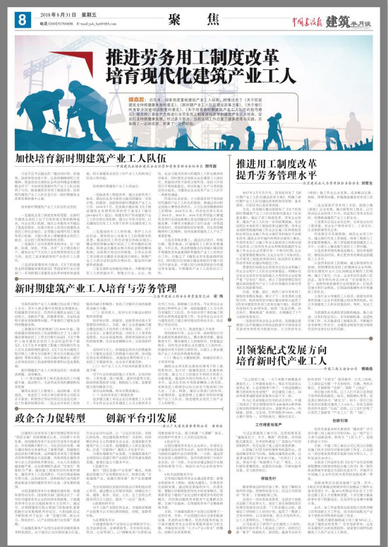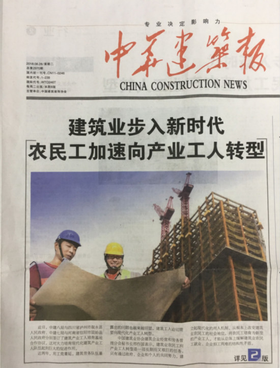 日前,《中国建设报》建筑半月谈8月31日专版聚焦“推进建筑劳务用工制度改革,培育现代化建筑产业工人” 91抖音视频,在头条位置刊登了我会副会长兼秘书长邢作国的文章《加快培育新时期建筑产业工人队伍》,以及我会理事唐新球等同志的文章《政企合力促转型创新平台引发展》,《中华建筑报》8月28日以《建筑业步入新时代 农民工加速向建筑产业工人转型》为题在头版头条和第二版显要位置刊登了采访我会负责人的专题报道。