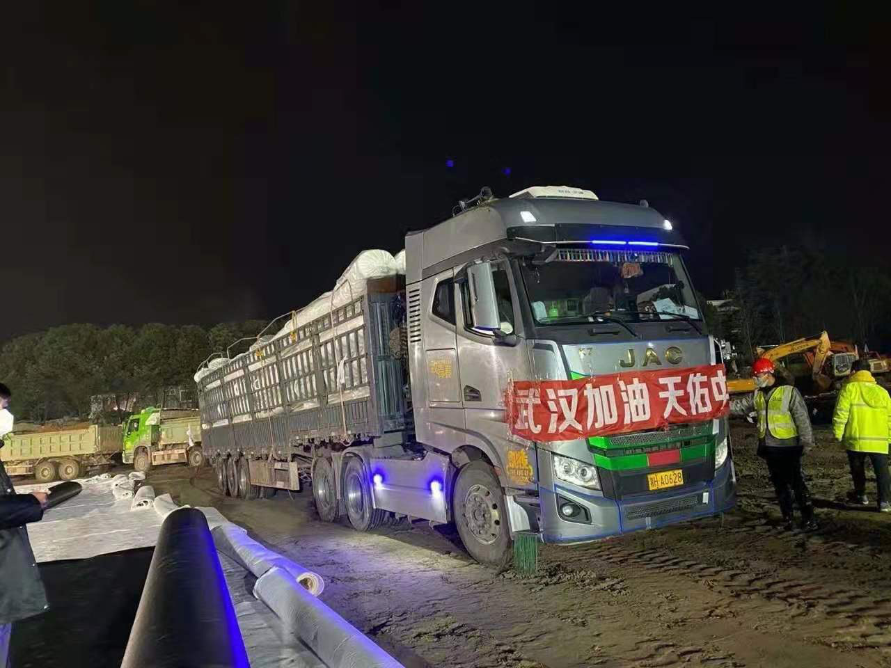 天鼎丰第一批4万平米土工布于1月26日(大年初二)全部安全抵达武汉施工现场。第二批1.8万平米土工布也于27日(大年初三)抵达现场。预计共有16万平米土工布防护材料投入武汉火神山医院建设。