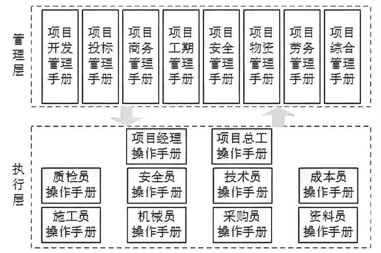 三是谋划标准化目标与思路。标准化的目标要与项目管理的目标对齐。项目管理目标包括施工效益目标、项目人才培养目标、市场拓展目标等,其中最主要的施工效益目标又可细分为工期目标、质量目标、安全生产目标、文明施工目标、成本目标、服务目标等。项目管理目标也是构建标准化体系的准则,标准化应围绕项管目标通过自上而下和自下而上相结合的方式来确定思路。