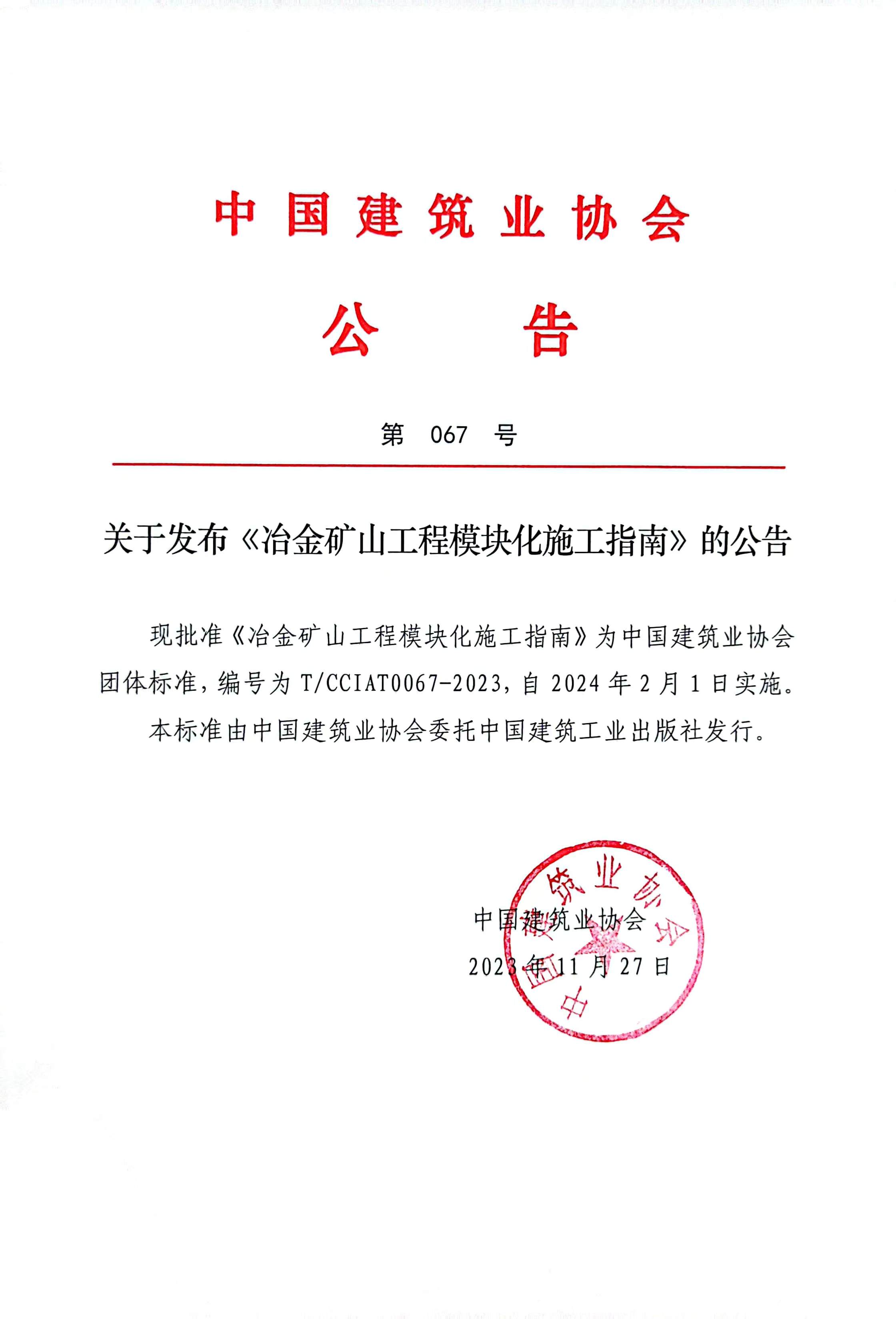 关于发布《冶金矿山工程模块化施工指南》的公告 (91成人抖音)