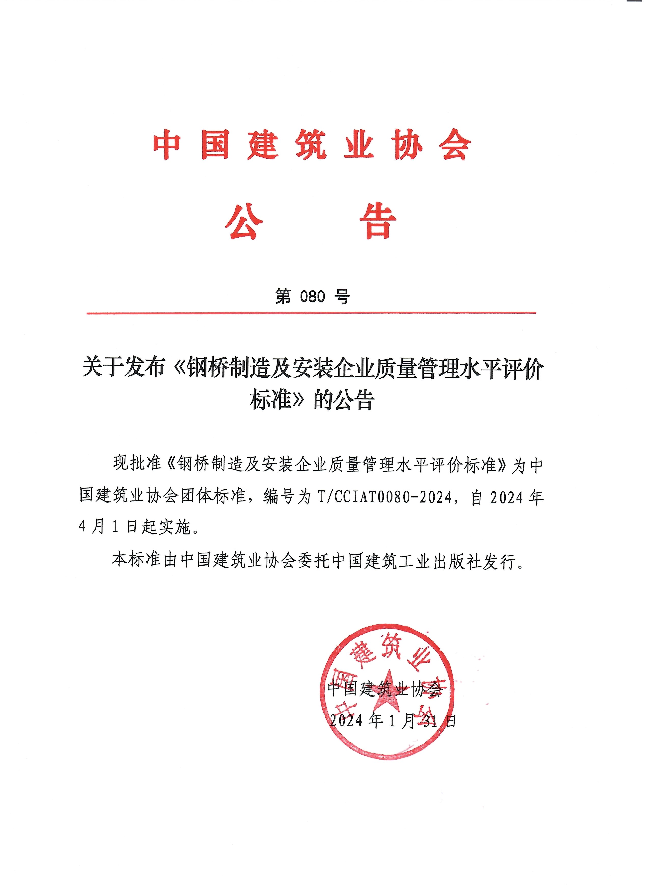 "91成人抖音" 关于发布《钢桥制造及安装企业质量管理水平评价标准》的公告
