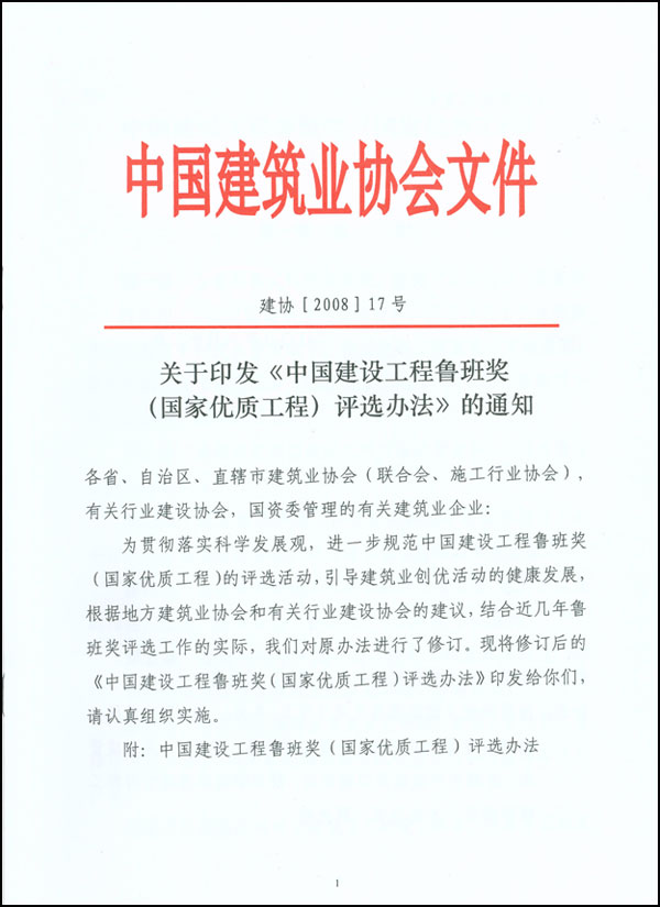 91抖音视频印发《中国建设工程鲁班奖(国家优质工程)评选办法》的通知