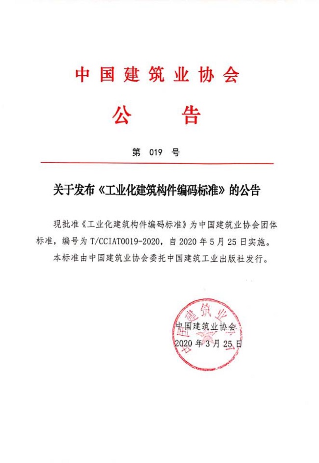 关于发布《工业化建筑构件编码标准》的公告 (91成人抖音)