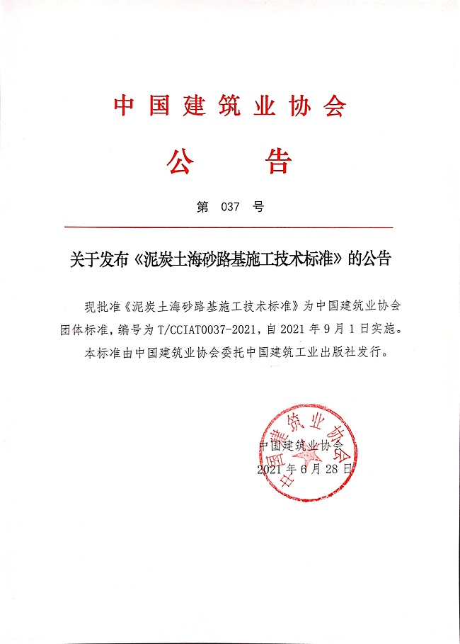 关于发布《泥炭土海砂路基施工技术标准》的公告