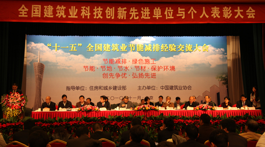 会议在总结交流“十一五”期间建筑业节能减排经验的同时,还对“十一五”期间为建筑业科技工作做出突出贡献的先进企业和个人进行了表彰。北京城建集团有限责任公司等140家企业、叶可明等19名专家、冯跃等120名总工程师和李久林等219名个人获此殊荣。来自全国建设行政主管部门的领导、行业协会负责人、专家学者及企业代表共400多人出席了会议。
