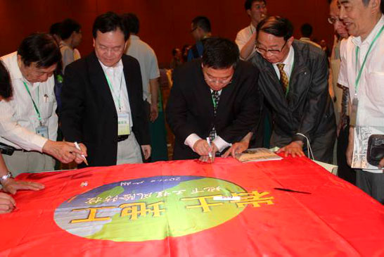 图3:海峡两岸代表在锦旗上签字