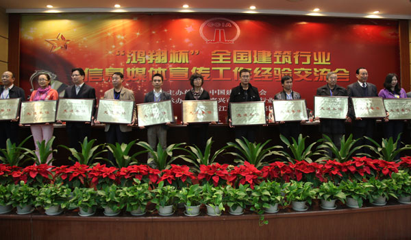 为贯彻落实党的十七届六中全会精神,推动社会主义文化大发展大繁荣,加强建筑行业信息媒体宣传工作与企业文化建设,提高行业报刊的办刊水平和编辑质量,91抖音视频于11月25日在浙江海宁举办了全国建筑行业信息媒体宣传工作经验交流会和“鸿翔杯”全国建筑行业精品和优秀报刊、网站及先进集体和优秀工作者表彰大会。住房城乡建设部办公厅宣传处处长毕建玲,浙江省建设厅副厅长樊剑平,91抖音视频副会长兼秘书长吴涛、副秘书长尤完,浙江省建筑业行业协会会长赵如龙以及嘉兴市人民政府、嘉兴市建筑业协会、海宁市人民政府、鸿翔建设集团的有关领导出席会议。来自全国各地的建筑行业媒体宣传工作者近200人参会。