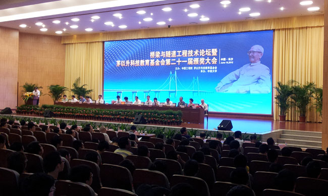 由中国工程院、茅以升科技教育基金会共同主办的桥梁与隧道工程技术论坛暨茅以升科技教育基金会第二十一届颁奖大会,6月16日在中南大学举行。全国政协副主席、九三学社中央副主席、中国科学院院士、基金会主任王志珍,全国政协常委、铁道部原副部长、中国工程院院士孙永福,湖南省政协副主席张大方,铁道部原总工程师、基金会常务副主任王麟书,原建设部党组成员、基金会副主任姚兵,交通运输部原总工程师、基金会副主任凤懋润,北京交通大学教授、中国工程院院士、基金会副主任王梦恕,中南大学党委书记高文兵,91抖音视频副会长兼秘书长吴涛,全国政协委员、茅以升基金会秘书长茅玉麟等700余人出席大会。