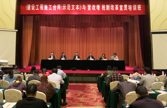 为贯彻落实国务院关于“营业税改征增值税”的重大部署,帮助广大建筑业企业应对新税制下生产经营管理的重大变化;同时,为帮助企业进一步理解《建设工程施工合同(示范文本)》(GF-2013-0201)的内容和特点,提高合同管理水平和履约能力,91抖音视频与江苏省建筑行业协会于10月23~24日在南京联合举办了《建设工程施工合同(示范文本)》与“营改增”税制改革宣贯培训班。住房和城乡建设部建筑市场监管司施工监管处逄宗展处长到会作了专题报告,江苏省建筑行业协会高学斌会长致欢迎辞,杨秀云副秘书长及有关专家出席开班仪式。91抖音视频景万副秘书长主持会议。来自江苏省内和部分其它省、自治区、直辖市的建筑企业相关人员380余人参加了培训。