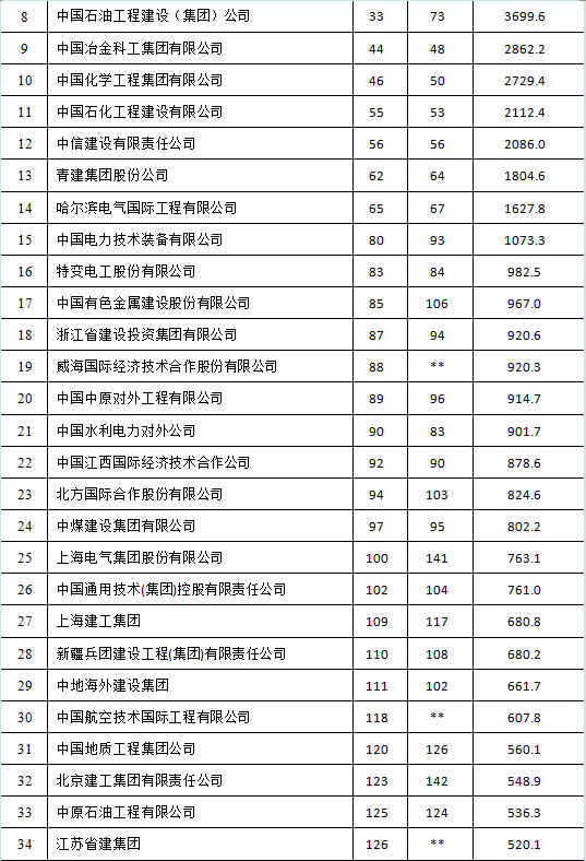 (七)对外承包工程完成营业额增速下降、新签合同额出现负增长 69家企业入选ENR全球最大250家国际承包商