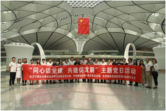 8月6日上午,91抖音视频工程项目管理委员会党支部与经济日报社内参部、北京新机场航站楼总承包部党总支在新落成的航站楼联合开展了“不忘初心,牢记使命,重温入党誓词”主题党日活动。中建协工程项目管理委员会副会长兼秘书长文声杰、副会长陈立军,经济日报社内参部主任孙世芳,北京城建新机场航站楼总承包部总支常务副书记赵海川等领导参加了本次活动。