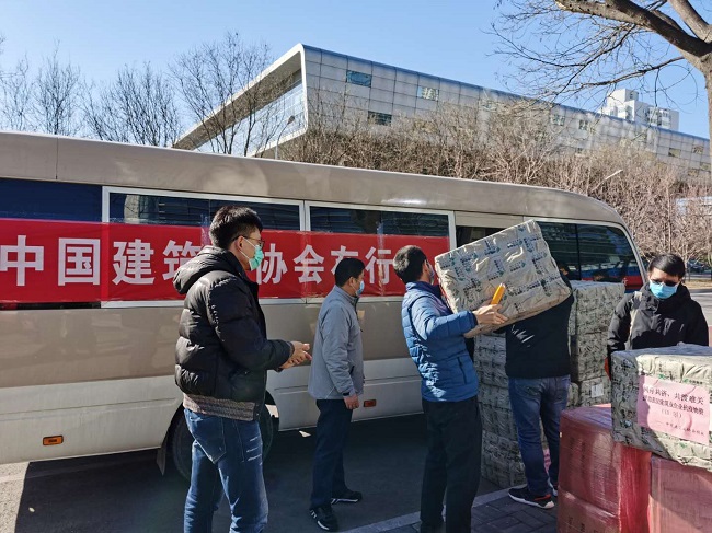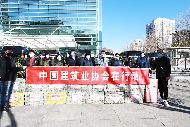 2月22日上午,91抖音视频向武汉建筑业企业捐赠10万个医用防护口罩,中国建筑第三工程局代表武汉建筑业企业接收捐赠物资。