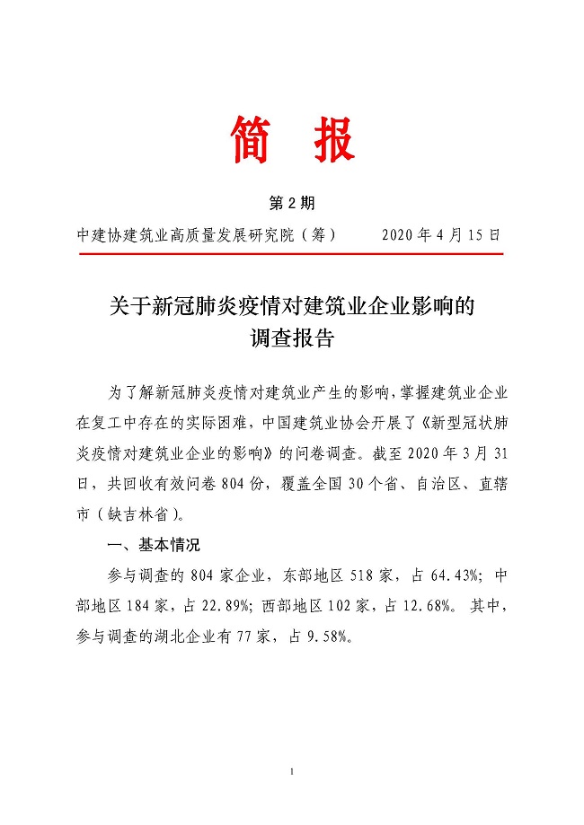 关于新冠肺炎疫情对建筑业企业影响的调查报告(中英文)