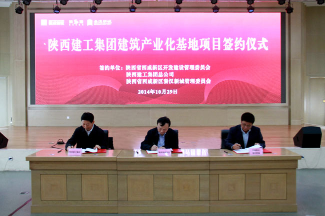 10月29日,随着陕西建工集团与西咸新区管委会、秦汉新城管委会三方协议在秦汉新城的共同签订,该集团总投资93亿元的建筑产业化基地项目正式落户西咸新区秦汉新城。该集团董事长、党委书记刘耀华,西咸新区党工委书记、管委会常务副主任王军,秦汉新城管委会主任杨占文出席签约仪式。参加签约仪式的还有该集团总经理薛永武及张义光、张建斌、薛增建、韦贤忠等。