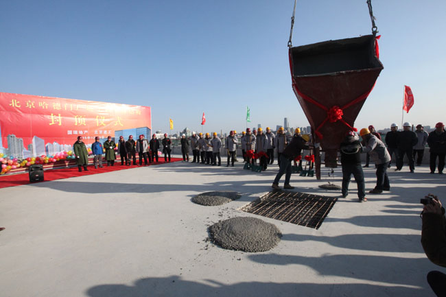 2015年12月3日上午10时18分,在繁华的崇文门商圈东南一角,一座宏伟大气的高楼拔地而起,由北京国瑞地产开发,北京建工四建施工的北京哈德门广场工程(东城区崇文门路口东南角0138-607地块商业金融项目)浇筑了最后一斗混凝土,这标志着该工程主体结构全面封顶, 哈德门广场工程所在地——崇文门,在元朝时期称为文明门,因元代哈达王府建在门内,故俗称为“哈德门”,又因为此门为才子赶考必经之门,该门亦被称为“幸运之门”,而明清时期在此设立的税务司又将此门打造为“财富之门”,所以,崇文门在京都九门之中极具盛名,今天,由北京国瑞地产开发建设的北京哈德门广场,更是成为了开发老北京“城门”品牌文化的扛鼎力作,它就像一把开启“财富之门”的金钥匙,不仅可以拉动商圈经济增长,显著提升城市品位,其地标建筑的品牌影响力对各参建单位的长远发展也有着重大意义, 据悉,哈德门广场工程的总建筑面积约为14万平方米,工程分为西塔和东塔,最高60米,该工程质量已经通过了北京市结构长城杯验收,并被认定为“首批北京市建筑业绿色施工示范工程”,正在参评第四批全国建筑业绿色施工示范工程,哈德门广场启用后,该地将实现崇文大街地下通道和轨道交通的连通,成为商业,5A甲级写字楼等高端城市综合体,同时兼顾传统老字号企业升级改造, 在封顶仪式现场,北京国瑞地产为北京建工四建颁发了“最佳合作单位”锦旗,四建也献上了“封顶大吉,国瑞长兴,建工永伴”为首字的藏头诗,互为战略合作伙伴的两家企业携手共进,立志为城市打造更多的精品公共建筑,造福社会,方便大众,而随着京津冀一体化和国家“一带一路”战略实施,在古城西安这一丝绸之路经济带的新起点,两家企业共同打造的西北五省第一高——350米的国瑞西安金融中心正处于紧张的施工之中 91抖音视频,又一个“财富之门”即将开启,(供稿人 崔瑞清 李天龙 孙冬梅)。
