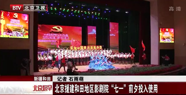 6月30日,和田地区庆祝中国共产建党95周年和长征胜利80周年“万方乐奏颂党恩”歌咏比赛在北京援建的和田影剧院落下圆满帷幕。新疆和田指挥部党委书记、总指挥卢宇国,北京援建和田指挥部副指挥、和田地区行署副专员刘晓光等人同北京建工四建援疆将士一同观看了演出。 和田影剧院位于新疆维吾尔自治区和田市迎宾路与昆仑路交汇处,与邻近的博物馆、文化馆、图书馆组成和田市文化中心,和田文化中心工程是第七批北京市对口援疆工程中的重点项目,由北京建工四建承建,工程总建筑面积45475 91抖音视频,44平米,其中地上建筑面积34274平米,地下建筑面积8201,2平米。工程由1栋文化馆、1栋博物馆、1栋图书馆、1栋演艺中心和1栋能源中心组成。 在施工中,北京建工四建援疆将士始终坚持“北京标准、北京效率”,他们切实把“五加二,白加黑”的口号转化为实际行动,通过合理安排、倒排工期,将工作细化到每一天和每名工人,最终实现了工程建设的各项目标。其中,和田影剧院原本是浙江省第二批对口支援项目的标志性工程,由浙江省以“交钥匙”方式建管,2014年,和田地委行署经与北京市对口援疆和田前方指挥部、浙江省对口支援办协商决定,由北京市对口援疆和田前方指挥部以“交钥匙”项目管理方式,全面接手项目的后续工程建设。和田影剧院总建筑面积10690平方米,可容纳885名观众,是和田地区规模最大的剧场建筑,可向国内外艺术团体提供具备优良视听条件、技术先进、设备完善、功能齐全的现代化演出场所,同时具备举行各种歌舞演出、戏剧和会议的功能。 演出正式开始,有着美好寓意的《昆仑玉河齐欢笑》、《我为恋人做锦衣》由和田地区新玉歌舞团和墨玉县文工团联合演出。歌曲《北京和田心连心》、《春天的芭蕾》、舞蹈《心灵手巧制作毯人》及魔术等节目让现场观众阵阵喝彩、掌声不断。同时,演员与台下观众亲密互动,并为北京人民送上当地特色的帽子,让他们感受到了维吾尔族独特的风俗和服饰文化魅力。 该演出是影剧院向外界打响的第一战,应和田指挥部党委书记、总指挥长卢宇国的要求:我们这一战,必须打得精彩,必须打得漂亮!演出前,所有专业人员一步到位,从严格的安保到设备齐全的声光电,从精神饱满的北京建工四建管理人员到热情洋溢的 志愿者,每个人都为这次演出打起了十二分精神。最终,在大家的共同努力下,本次演出取得了圆满成功,并且影剧院富丽堂皇的装修效果与新玉歌舞团精彩的表演给“京和号”的人民群众留下了深刻印象。对此,指挥部的领导给予北京建工四建援疆工程很高的评价:远赴边疆,不负众望,齐心协力,共筑一方。(供稿人 崔瑞清 梁雪)。