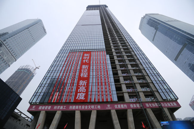 11月29日,随着最后一方混凝土浇筑到位,由北京建工四建负责施工的350米国瑞•西安金融中心工程顺利实现结构封顶。这座集金融办公、文化科技、商务休闲等功能于一体的超高层摩天建筑,在国策战略重地“一带一路”桥头堡的西安,历时两年之久,最终冲破城市天际线,傲然挺立在高新区CBD中心锦业路上,气势磅礴,成为最耀眼的存在。 国瑞•西安金融中心工程位于西安市高新区创业新大陆北侧,总造价约20亿元,总建筑面积约29万平米,由1栋高达350米的超高塔楼(75层)、24米裙房(3层)和4层整体地下室组成,裙房采用框架剪力墙结构,顶层为钢框架结构,塔楼与裙楼之间设有一座钢连桥。项目自2015年入场施工以来,克服施工场地狭小、结构超高、钢结构总量大、高空焊接、专业多、分包多、大型复杂超高层建筑的施工总承包管理难度大等诸多难点,于2016年5月全面冲出正负零,初展雄姿。之后,国瑞•西安金融中心项目工程施工团队,历经酷暑、不畏寒冬、克服诸多困难,优化各工序的无缝衔接,合理增加施工人员和设备投入,在2016年11月建设高度突破100米,2017年4月突破200米,8月突破300米,直至今日,主楼结构正式封顶,致使国瑞•西安金融中心项目正式跻身超高层摩天大楼之列,直冲云霄,“西北第一高”实至名归。 策划先行提升超高层施工速度 “超高层施工,前期策划非常重要”,身为国瑞•西安金融中心的项目经理,张进红开门见山地对记者提到。“前期需要把施工中的各个环节都要想好,进场之后,现场如何施工决定了整个超高层施工的快慢和各方面的社会影响。”在工程进场初期,项目部便通过前期策划,打破原有施工常规,先进行车库施工,之后再开始塔楼施工。“工程施工场地非常狭小,这也是当初所面临的最大难题,料场、钢筋加工厂、模板堆放都需要场地,按照常规的施工模式,如果先进行塔楼施工,甩掉周边的车库施工作为料场,那么车库就一直建不了”张进红坦言。基于此,项目部果断作出决定,先干车库,等车库封顶之后,用车库顶板作为塔楼施工的操作面,不仅可以作为各种料场的堆放场地,也可以作为钢结构加工的施工场地,从整体上提升超高层施工进度。但是难题又来了,车库顶板能否承受住承载钢构件的重车重量?“这些细节都是我们前期反复思考的,包括我们进行承载力的核算与试验,然后就是落实、再落实的过程”。最终,车库顶板浇筑40公分厚,完全可以承载钢结构重车等重型机械的重量。 超高层地上结构的垂直运输体系,同样是项目部前期策划的重要一环,也是需要克服的难题之一。垂直运输体系,包括塔吊、电梯、超高层泵送砼及浇筑等等,均需要多次研究确定。就拿塔吊来讲,由于国瑞西安金融中心采用爬摸及爬架施工技术,因此核心筒与外框结构需要错层施工,错层高度为10层左右(含钢结构),加上吊钩及吊绳,高度47米左右,甚至更高。为此,项目部综合考虑各项因素之后,决定在施工中使用两台LH800-63型内爬式动臂塔以满足现场吊重需求。这种型号的塔机起重量大,最大吊重达63吨,能完全满足现场吊重需求;同时该型号塔机安装总高度大,达到57米,能更好的满足现场需求;特别是垂直起降速度快,理论最大速度130米每分钟,这对保障施工进度非常有价值。另外,项目部制定了合理的塔吊使用计划,施工现场增加塔吊驾驶员人数,确保塔吊24小时工作,以满足现场钢构件、土建及水电施工物资调运。同时,提前制定塔吊顶升计划,确保塔吊、钢结构、爬模不发生互相掣肘现象。项目部根据实际的施工情况,及时调整塔吊顶升时间,确保塔吊顶升时上层待施工作业面钢构件已完成安装,以便土建具备继续施工条件。换“手”如换“刀”,两天动臂塔投入工作之后,对现场整体施工起到了巨大的促进作用,核心筒达到3天一层,进入快速施工阶段。“在排除各种天气因素之外,一个月能够达到9层左右,应该说这是中国建筑施工中的最快速度了”项目经理张进红表示。 科技攻关破解超高层施工难题 国瑞•西安金融中心作为北京建工集团首个300米以上超高层,存在施工现场狭小、结构超高、钢结构总量大、管理难度大等难点。为此,项目部成立了专项技术小组,经过与集团科技部、各方专家的多次探讨,最终确定了28项科研课题。目前已完成超大体积底板砼浇筑、钢板砼剪力墙防裂、钢构V型柱吊装等13项课题,确保了工程质量。已完成新型实用专利申报10项,正在申报的发明专利2项,省级工法3项,已审定论文6篇,完成科技研究成果报告1项,有效地解决了工程建设过程中的难题。 在大体积底板砼浇筑中,为了确保混凝土的浇筑质量,项目部做了大量的试验,确保在进行大底板混凝土浇筑过程中,温度在规范值以内。本着性价比最高的原则,项目部选择了12个配方,利用矩阵式的试验方法,即横向12、纵向12,然后进行试验对比,通过理论计算,再加上实际检测,最后选择温度最低的配合比。在实际操作中,混凝土的最高温控制在63度,远远低于规范的极限值80度。在混凝土浇筑过程中,项目部采用汽车泵送、直径500毫米钢管溜桶、塔吊吊大容量灰斗三种输送方式相结合,充分发挥溜桶输送开、汽车泵送范围广、塔吊吊灰斗灵活的优势,避免了汽车泵堵管、结构产生冷缝、重型塔闲置的劣势,50小时完成1 91抖音视频,95万方混凝土浇筑, 针对钢板砼剪力墙易产生裂缝的问题,项目部为