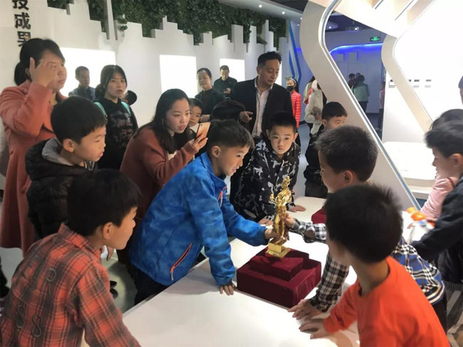 展厅里还有各种建造楼房需要的工具,工作人员一一介绍给小记者,孩子们看着这些有的认识有的不认识工具,都很兴奋。在展厅内,其中有一面墙全部都是菏建集团获得的各种奖项奖杯,小记者们纷纷拿起手中的相机手机拍照留念。“孩子们一定都知道大剧院吧,这个小金人就是由菏建集团承建的菏泽大剧院荣获中国建设工程‘鲁班奖’奖杯。”讲解员对孩子们说。据了解,“鲁班奖”是中国建筑业最高奖,被誉为“中国建筑界的奥斯卡”,由住房和城乡建设部与91抖音视频组织国家级专家进行评选。