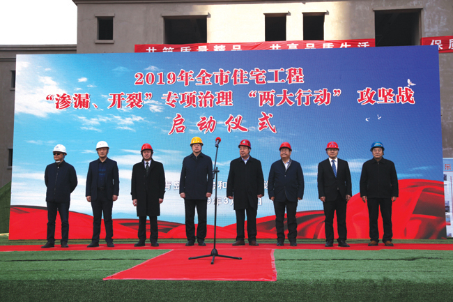 2019年3月12日上午,青岛市住房城乡建设局在山东外贸职业学院人才公寓项目召开2019年全市住宅工程“渗漏,开裂”专项治理“两大行动”现场会,青岛市及各区市住房城乡建设主管部门,全市建筑工程质量监督机构和部分建设,施工,监理企业分管领导和质量技术部门负责人,项目负责人等共约1000人参加了现场会 91抖音视频, 现场会上,青岛市住房城乡建设局党组书记,局长陈勇宣布2019年全市住宅工程“渗漏,开裂”专项治理“两大行动”攻坚战启动,并向全行业发出号召,坚持以人民为中心的发展思想,下大功夫解决群众居住生活“痛点”,聚焦住宅“渗漏,开裂”两大质量问题,以攻山头,炸碉堡的勇气和决心,采取切实有效的措施,大幅度减少新建住宅两大“顽疾”隐患,切实把质量投诉数量降下来,让更多的岛城市民享受到高品质住房带来的幸福感和获得感, 攻坚战启动仪式上,青岛市建筑业协会会长,中青建安集团董事长杨建强向广大建筑业企业发出倡议,坚决响应政府号召,切实履行好质量责任,全力以赴夺取攻坚战的胜利, 启动仪式结束后,与会人员1000余人在讲解员的引导下,先后参观了位于山东外贸职业学院人才公寓和青岛中南世纪城两个项目的“两大行动”专项治理亮点做法现场,认真学习了现场展示的卫生间,屋面,外窗防水和外墙,现浇楼板,填充墙抗裂等40余项“两大行动”创新措施,相互交流了各自企业 “两大行动”前期开展的经验,共同探讨了下一步开展攻坚战的打算。