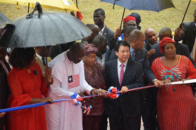 周欲晓大使和利总统维阿共同为政府办公楼剪彩
