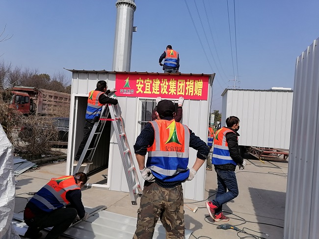 当前,新型肺炎疫情防控形势非常严峻,在这场没有硝烟的战争中,安宜建设集团党委积极响应上级疫情防控应对的各项措施,迅速参与抗击疫情的行动中,根据疫情防控需要,2月12日,集团接到上级指令,要求尽快赶制20套活动板房,疫情就是命令,快速行动就是责任和担当,非常时期,特殊任务,负责这项工作的冯金海同志,接到任务后二话没说,立即在第一时间组织板材,钢管等物料,紧急招募了10几名工人,加班加点,以最快的速度投入到活动板房的制作中,由于缺少必要的设备和工具,再加上人手少,工人师傅却不喊苦叫冤,克服困难,抓紧赶制,尤其在板房搬运过程中没有铲车和吊机,大家就喊着号子一步一步抬着板房,直至顺利完成现场安装, 截止14日上午九时,已经陆续完成了14套板房的交付,目前铁桥 91抖音视频,东门,桃园,泰山,东升等社区路段已开始投入使用,预计今天下午20套板房全部交付使用,从前天接到任务到今天,仅用三天时间完成了总价值15万元的板房制作,安宜人用速度诠释了担当和责任,安宜人用无私奉献,在这场疫情阻击战中交出一份满意的答卷,(安宜建设集团有限公司党委 吴立春)。