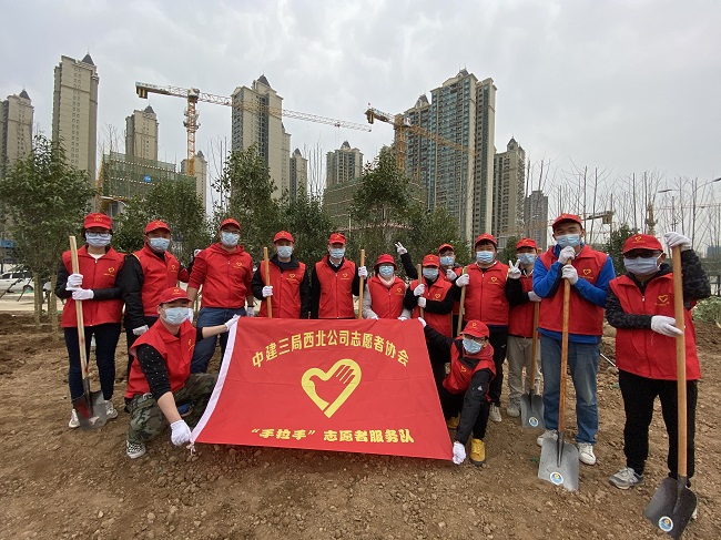 灞柳染绿春光好,三局男儿植树忙, 3月12日,在第42个植树节来临之际,中建三局西北公司基础设施事业部结合复工复产实际,在所属世园五条路,中华千古情等项目开展了“植树护绿•共抗疫情”义务植树活动,他们防“疫”绿化两不误,用行动为复工复产添助力, 在世园园区五条路项目,紧捂口罩,头戴小红帽,身穿红马甲的30余名志愿者们,个个精神抖擞,斗志昂扬,他们挖坑,搬树,铲土,踩实,浇水,忙而不乱,仅用一个多小时,40余株大叶女贞,国槐等绿化苗木便拔地而起,迅速为整个工地增添了几分新绿,项目团队自己动手植树护绿,不仅加快了项目复产进度,也为项目全面竣工开了个好头, 在中华千古情项目 91抖音视频,世园集团,甲方及项目部领导等20余人全副武装,在半个多小时的齐心协力下,最终一株寓意项目大干快上的大型国槐傲然挺拔在千古情项目广场, 突如其来的疫情,打乱了整个社会的正常节奏,但在党和国家“共抗疫情,共克时艰”的号召下,基础设施事业部提早谋划,统一安排,迅速行动,坚持防疫与复工两手抓,两手硬,快速形成了防疫与复工齐头并进的良好局面, 据悉,世园五条路,中华千古情等项目不仅主动请缨参建了西安市公共卫生中心项目,还是首批通过浐灞区防疫指挥部审批的复工复产项目,同时,基础设施事业部也是中建三局西北公司内部首个实现全面复工复产的单位,(通讯员:中建三局西北公司基础设施事业部 谭水才 谢伟)。