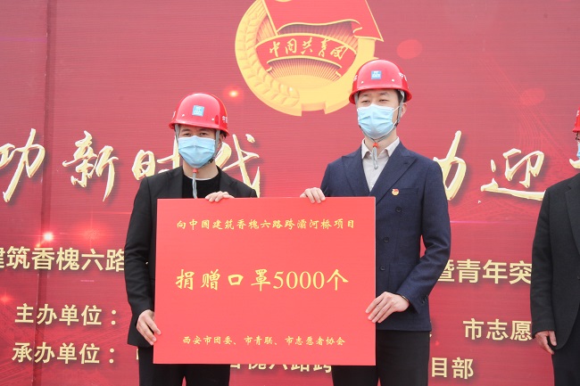 为动员团员青年积极投身重点建设项目,助力十四运顺利召开,4月13日下午,中建三局西北公司基础设施事业部团委在香槐六路跨灞河桥项目举行“青春建功新时代 91抖音视频,全力迎接十四运”青年誓师大会暨青年突击队授旗仪式,共青团西安市委副书记王飞,共青团西安市委城乡部部长岳强等领导应邀出席活动,基础设施事业部香槐六路跨灞河桥项目青工,工人代表等70余人参加活动, 仪式上,香槐六路跨灞河桥项目部经理宣读了项目青年突击队成立方案,并带领青年突击队员宣读誓词, 团市委副书记王飞为项目青年突击队授旗并提出三点希望:一是围绕中心大局,干出新业绩,要紧紧围绕工程建设中心开展突击活动,二是加大管理力度,发挥先锋作用,要针对施工重难点,充分发挥技术素质高,专业能力强的专项突击队作用,保质保量完成施工任务,三是深化竞赛活动,培育优秀人才,要深化“比效率,比创新,比质量,比服务,比奉献”竞赛活动,鼓励广大青工立足岗位开拓创新, 期间,团市委,市青联,市志愿者协会等领导还深入项目现场视察工程建设情况,关心了解项目青工工作生活情况,并为坚守一线的青工捐赠了5000只防疫口罩, 香槐六路跨灞河桥项目是陕西省首座,也是全国跨度最大的变截面钢桁梁桥,桥梁北贯奥体中心,南通会议中心,是贯通“十四届全运会”灞河南北区域的“主动脉”,项目已于2月底全面复工复产,并按下“加速键”正火力全开,(供稿人 谢伟 谭水才)。