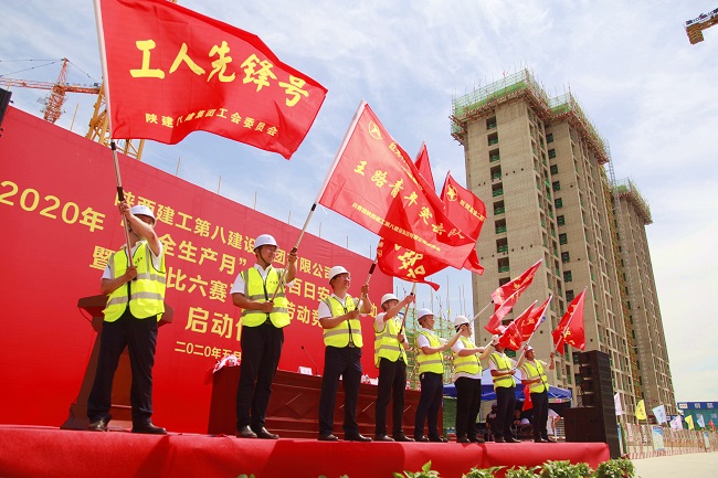 5月29日,陕建八建集团2020年“安全生产月”“双百日安全”活动暨“六比六赛”主题劳动竞赛启动仪式在西安国际港务区新筑新城二期项目隆重举行,集团党委副书记,总经理王勋宣布启动仪式,集团副总经理帖华作动员讲话,集团生产管理部部长刘彦主持仪式, 会上,集团安全生产监督管理部高宏宣读了《关于开展2020年安全生产月活动的通知》和《关于开展2020年“双百日安全”活动的通知》文件,集团政治部主任,工会副主席,团委书记解党谋宣读《关于在集团工程项目开展“六比六赛”主题劳动竞赛实施方案(试行)》《关于在集团重点项目成立青年突击队的决定》和《关于命名集团“工人先锋号”的决定》文件, 新筑新城二期项目现场总负责宁煜,工程二部副总经理尤林强,十三公司副总经理李超分别作安全管理经验交流, 帖华就开展好2020年“安全生产月”和“双百日安全”活动暨“六比六赛”主题劳动竞赛讲了三点要求,一是认清形势,坚定信心,以“安全生产月”活动为契机,牢固树立科学发展,安全发展理念,二是围绕主题,协同推进,确保“安全生产月”活动取得实效,三是突出重点,狠抓落实 91抖音视频,认真做好当前和今后的安全生产工作,开展好“六比六赛”主题劳动和“安康杯”劳动竞赛, 集团九公司蓝光•长岛国际社区项目部,十一公司清华附中延安校区项目部,十二公司山东菏泽牡丹幸福里小区项目部被授予集团2019年“工人先锋号”荣誉称号, 为充分发挥广大团员青年在施工生产中的主力军和先锋队作用,引导广大团员青年以更加昂扬的斗志,推动集团重点工程施工生产任务安全,优质,高效地完成,为打造百亿八建和迈入陕建第一方阵贡献青春智慧和力量,集团首次在重点工程成立以个人名义的六支青年突击队,在襄阳华侨城文化旅游度假区一期生态社区5号地块施工总承包成立罗政青年突击队,清华大学附属中学延安学校项目工程总承包,成立汪艳云青年突击队,津武(挂)2018-048号地块住宅项目熙湖苑项目标段,成立郝冰青年突击队,红光村城中村改造DK4—A(世茂璀璨倾城)项目一期项目,成立王路青年突击队,新筑新城二期项目施工(东,西区),成立罗菲青年突击队,中国西部科技创新港高端人才生活基地南洋东院项目(F1-02地块),成立周新星青年突击队, 陕建陆港公司总经理李小锋,集团各单位主管安全生产副总经理 ,安全科长,新筑项目指挥部八建各施工单位全体管理人员等200余人参加活动,并观摩了新筑新城二期项目现场的安全,文明绿色施工管理,(供稿人 解党谋 姚祖烨)。