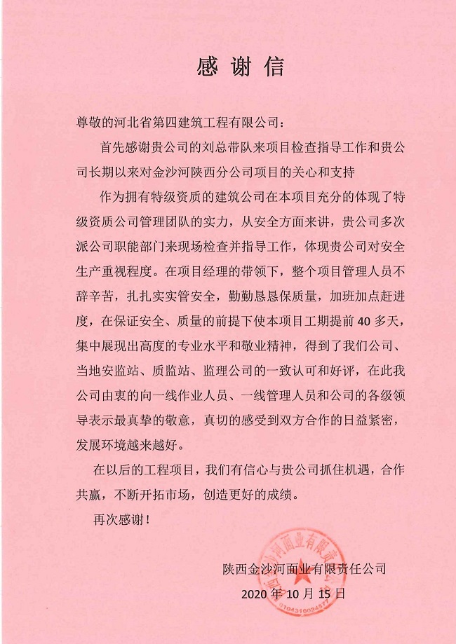 10月22日,河北建工集团省四建四分公司收到陕西金沙河项目部业主单位致公司的感谢信和锦旗,以及武功县住房和城乡建设局、监理单位赠送的锦旗。 业主单位陕西金沙河面业有限责任公司在感谢信中,对公司管理团队的专业水平和综合实力给予了充分肯定,表达了今后与公司深化合作的意愿。来自不同单位的锦旗上,分别写着“服务至上 诚信履约”“创精品工程 展铁军风采”“技术创新 高质高量”,充分体现了对公司管理团队诚信守责、真抓实干、技术过硬、能打胜仗工作作风的一致肯定。 今年以来,陕西金沙河项目部精心组织,措施有力,充分发扬河北四建铁军精神,保安全、抓质量、促工期,成效显著,业主单位主动将工程造价约5000万元的粮食加工仓储及包装饮用水生产项目(厂前区)司机宿舍项目交由我方施工。 扎扎实实管安全,筑牢安全生产屏障。针对本项目群方仓整体滑模施工和群方仓顶板架空模架整体安拆施工均为超危大工程的实际,项目部在滑模施工过程中,对操作平台上的材料严格做到分散、均匀堆放,规避安全风险。在仓顶整体模架整体安拆吊架子施工过程中,全部使用手动扳手进行二次紧固,并用扭力扳手逐一检查,使每个扣件都达到规范要求,确保了架体稳定安全。针对麦仓工程仓顶板预留孔洞较多的特点,项目部及时提醒业主提前准备下粮口设备,模板拆除后立即安装,保证了安全。对于不能及时安装的预留洞口,按要求做好封闭,并设置“下有洞口、禁止踩踏”警示标语,确保安全。在仓底填充料抹面施工时,由原来采用卷扬机挂吊桶吊运改为用塑料管带下料,降低了安全风险。 勤勤恳恳保质量,精细管理逢建必优。按照方仓仓体滑模施工工艺要求,模板没有固定的支点,且仓体较高,滑模过程中易造成模板变形和垂直度偏差。项目部采用增加线坠吊点数量、增加每天测量次数、尺量检查与经纬仪检测相结合“两增一结合”的方法,24小时跟踪检查,有效防止了模板变形,保证了仓体垂直度。本工程为连体方仓结构,仓体之间伸缩缝距离只有260毫米,按照以往的施工方法,需用挤塑板填充隔离,既不利于仓体垂直度控制又浪费填充材料,项目部积极改进施工方法,采用在伸缩缝一侧采用厚钢板、增大加固槽钢型号的方法,模板整体组装一次成型,工程质量明显提升。原粮仓仓壁滑模施工期间正值暑期,针对混凝土凝固快、易造成模板与混凝土粘连的现象,项目部安排专人与搅拌站对接,根据天气情况及时调整混凝土配合比,保证了五个仓体滑模全部原浆收面,做到了内坚外美,得到了建设单位及监理单位的一致好评。 加班加点赶进度,履约践诺外树形象。2020年春节后,项目部一手抓防疫、一手抓复工,三名班子成员于2月20日到达现场,重点从人材机等方面进行施工布置,做实做细各项准备工作,不到7天具备复工条件。项目部与作业队分工协作,各自发动“朋友圈”力量组织劳力,为顺利复工提供人力资源。到3月底,现场劳力200人。5月份第一个方仓配麦仓开始进行滑模施工,比计划工期提前8天,当时现场劳力已达千余人。7月份最后一个方仓缓冲仓滑模施工完成。滑模高度为33 91抖音视频,6米的单个仓体,原计划11天完成滑模施工,实际只用了9天,五个方仓累计用时45天,比计划工期提前10天。截至10月中旬,现场实际进度较合同工期提前40余天,得到了业主单位及当地政府部门的高度赞扬,为公司稳居和拓展陕西市场奠定基础。5月9日,项目部抢抓工期保进度的事迹在咸阳市广播电视台《关注咸阳》栏目播出,树立了良好的企业形象。 目前,该项目工程主体施工已全部完成,正在进行二次结构施工,预计11月底能全部完成。据悉,项目部承建工程为金沙河(杨陵)新建日处理3200吨小麦面粉加工项目,位于陕西省咸阳市杨陵区农产品加工贸易示范园武功园区,建筑面积约80000平方米,建成后将成为西北地区最大的农产品加工基地。(李佳)。