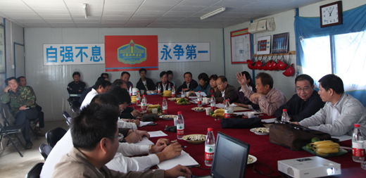 图1:专家听取全国组织干部学院工程项目总工介绍绿色施工基本情况