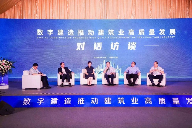 毛志兵常务副主任、韩振勇副主任、张薇秘书长、供应链管理公司和广联达等领导参加了对话访谈环节,李云贵副主任主持。毛志兵常务副主任就中国建筑业数字化转型情况、面临的挑战及突破点做了详细阐述:当前,中国建筑业正走在以新型工业化变革生产方式、以数字化推动全面转型、以绿色化实现可持续发展的创新发展新时代。推动行业数字化转型的关键就是要推动建造方式向智慧建造发展。推动建筑业数字化转型将是未来很长时期的核心任务,突破数字化转型的关键在于提高价值创造能力、变革产业体系以及推动科技创新。特别指出,数字化转型必须依靠科技创新,这是实现高价值创造能力和支撑产业体系变革的前提,更是数字化转型得以持续推动的根本支撑。访谈中,嘉宾们还分别就工程设计领域、供应链角度、软硬件研发方面,以及协会自身的数字化转型和推动企业做好转型升级等一系列当前行业数字化发展和转型中的热点和难点问题进行了深入的交流和指导。嘉宾们一致认为:十四五开局,数字化建设势在必行。建筑企业应该加大数字化资源投入,积极推进数字化进程,实现项目和组织工作流程的系统化、规范化、科学化,提高综合管理能力和水平。